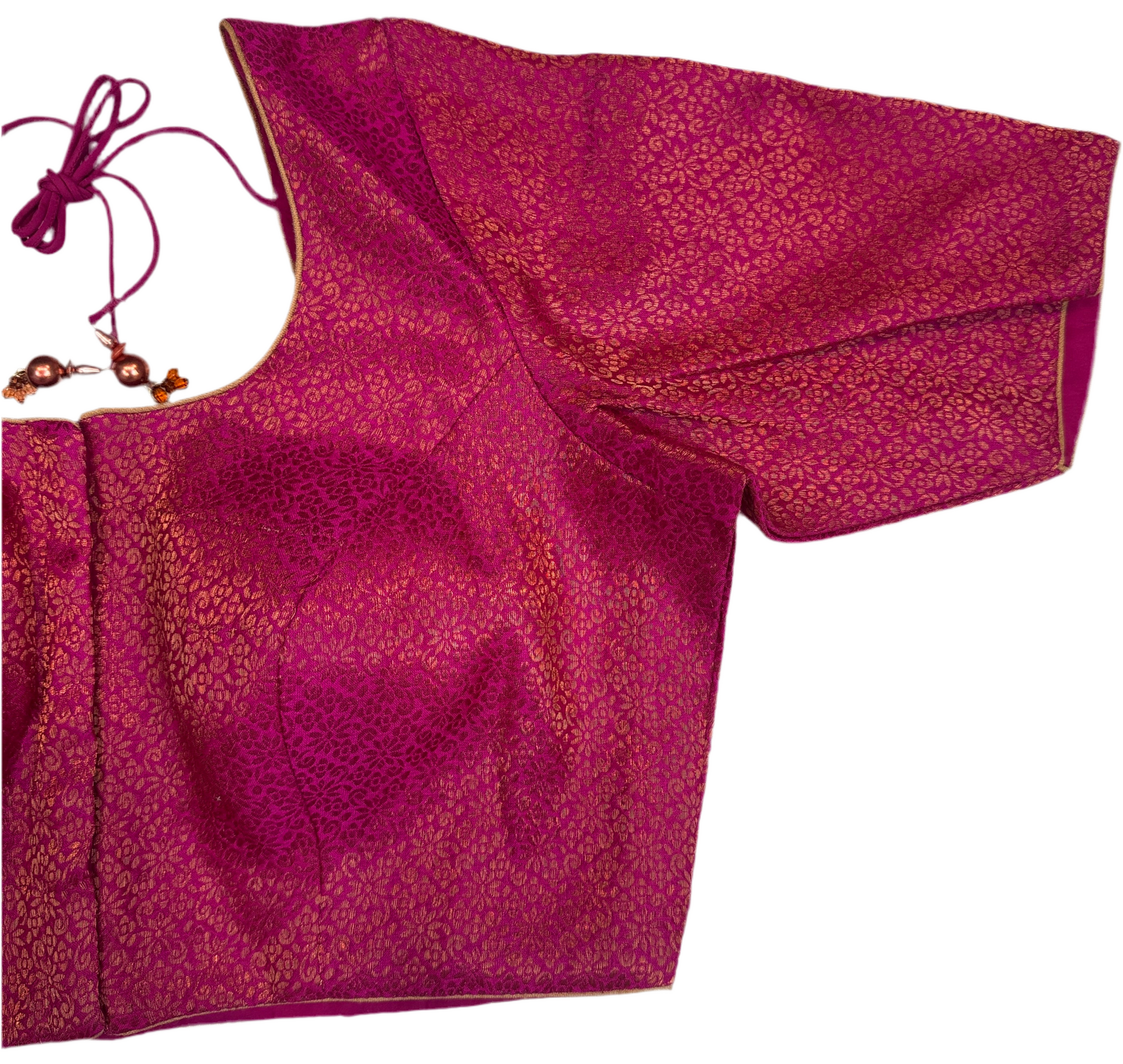 Alluring Front Open Rani Pink Color Brocade Elbow Sleeve Readymade Blouse For Women