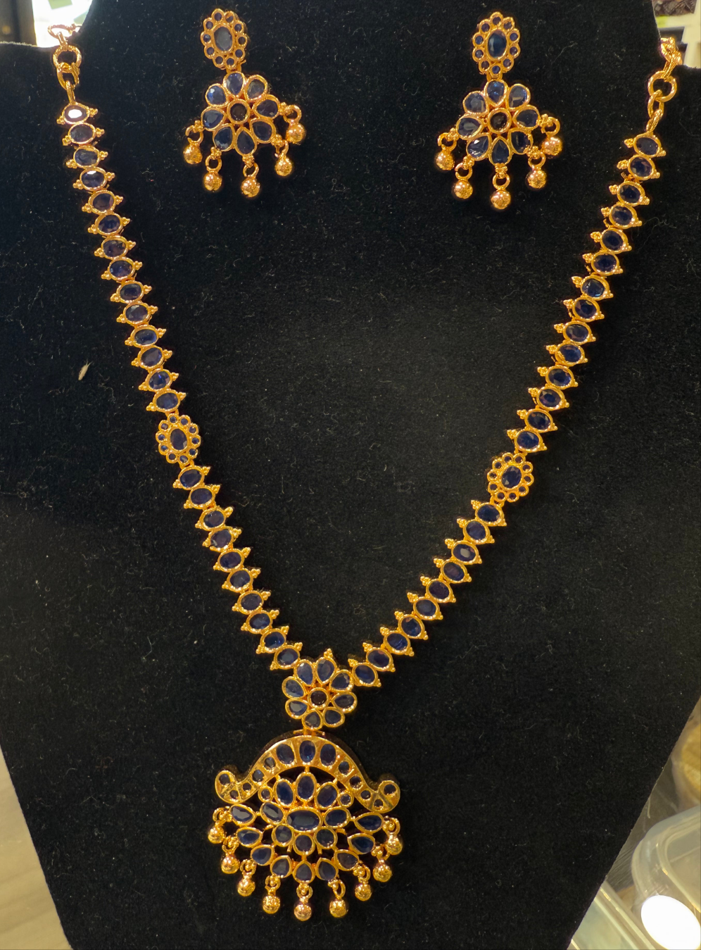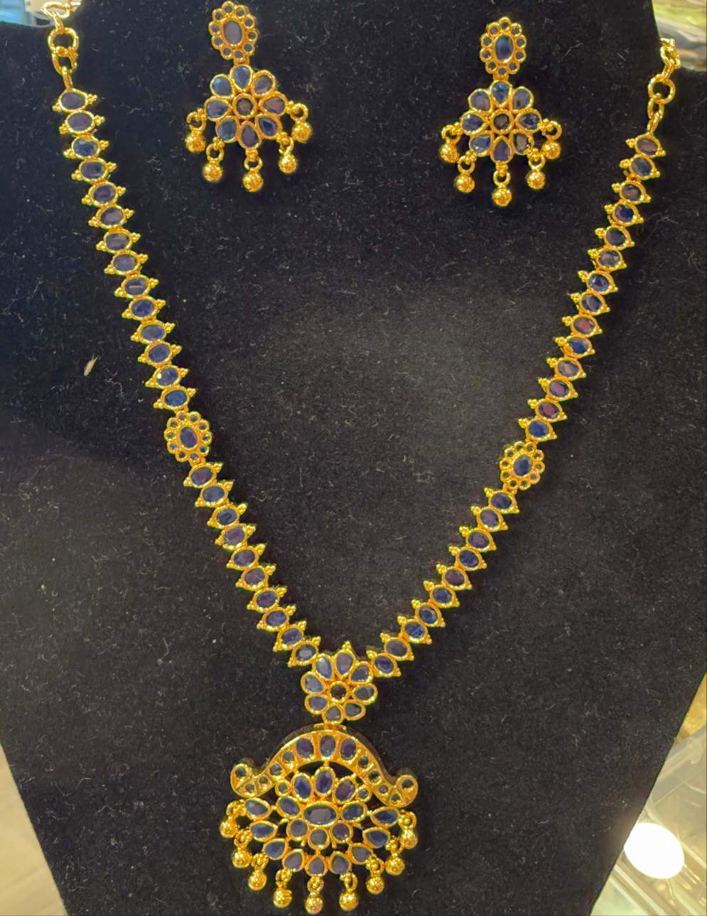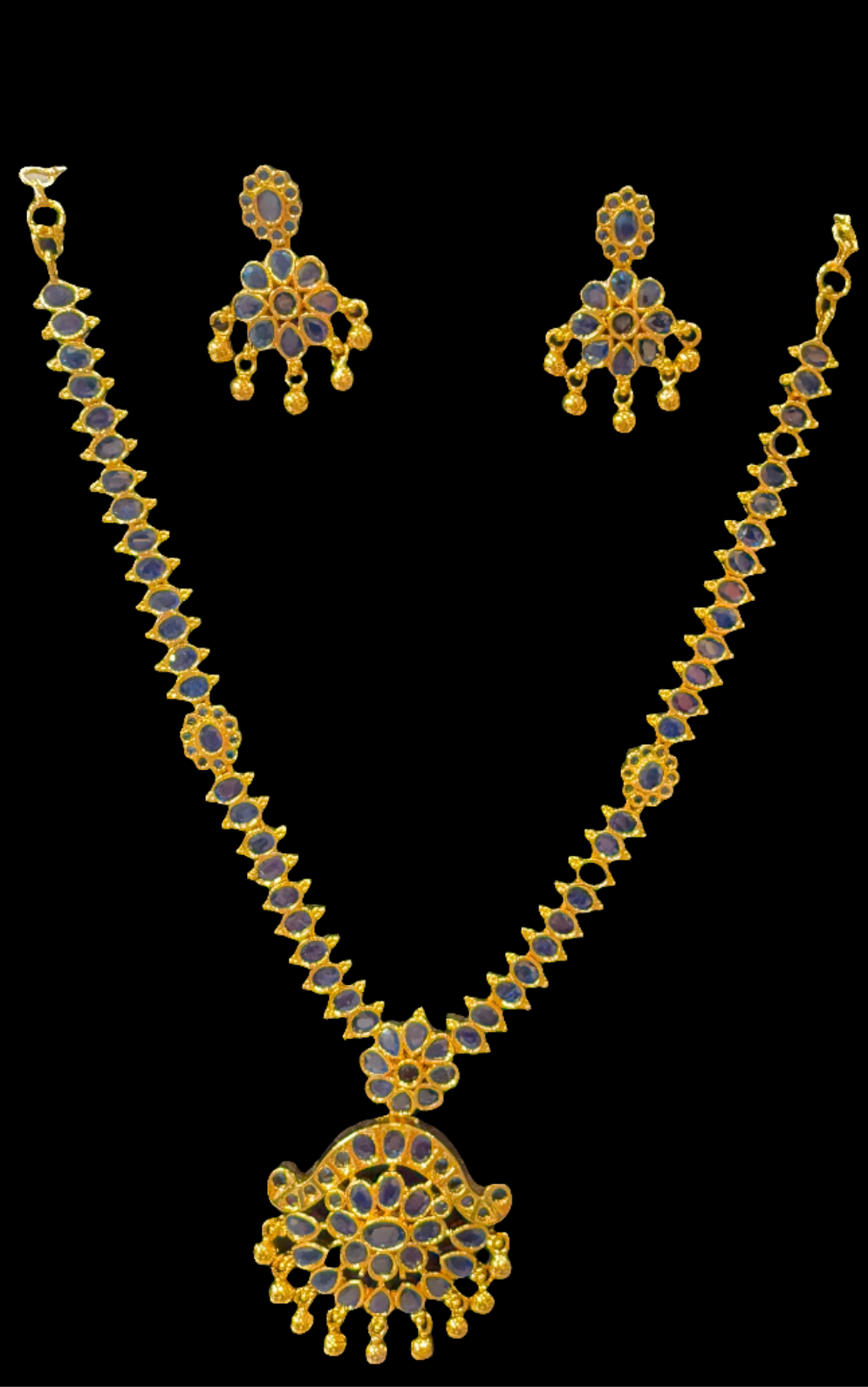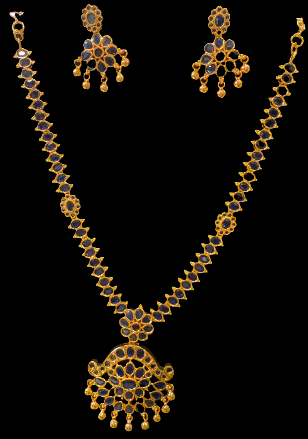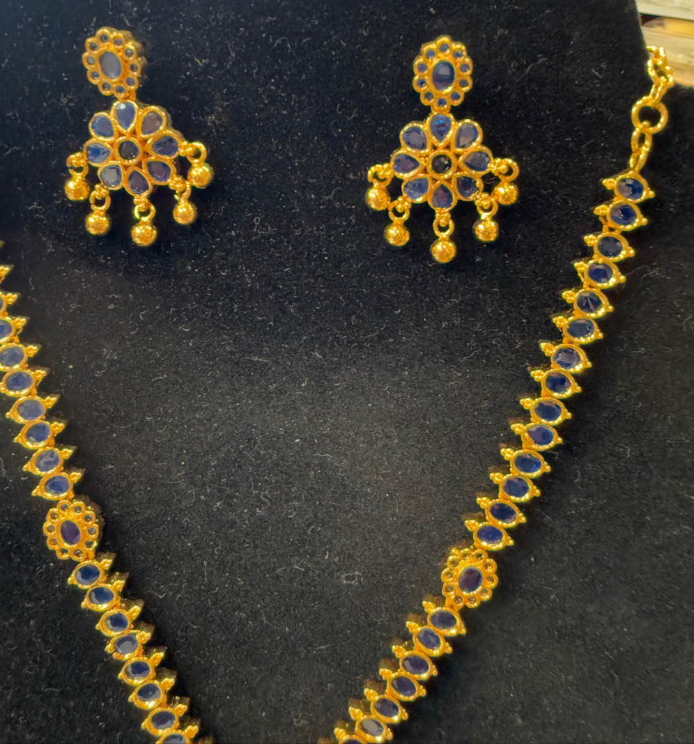 Alluring Gold Plated Navy Blue Color Necklace With Earrings
