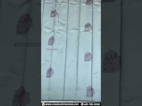 The "VADHUVAI KANCHI PATTU" Sarees This Is A Light Blue Silk Saree With A Darker Blue Floral Paisley Pattern On The Bottom Corner. The Saree Is Unstitched And Has A Lustrous Sheen, Characteristic Of Silk Fabric.