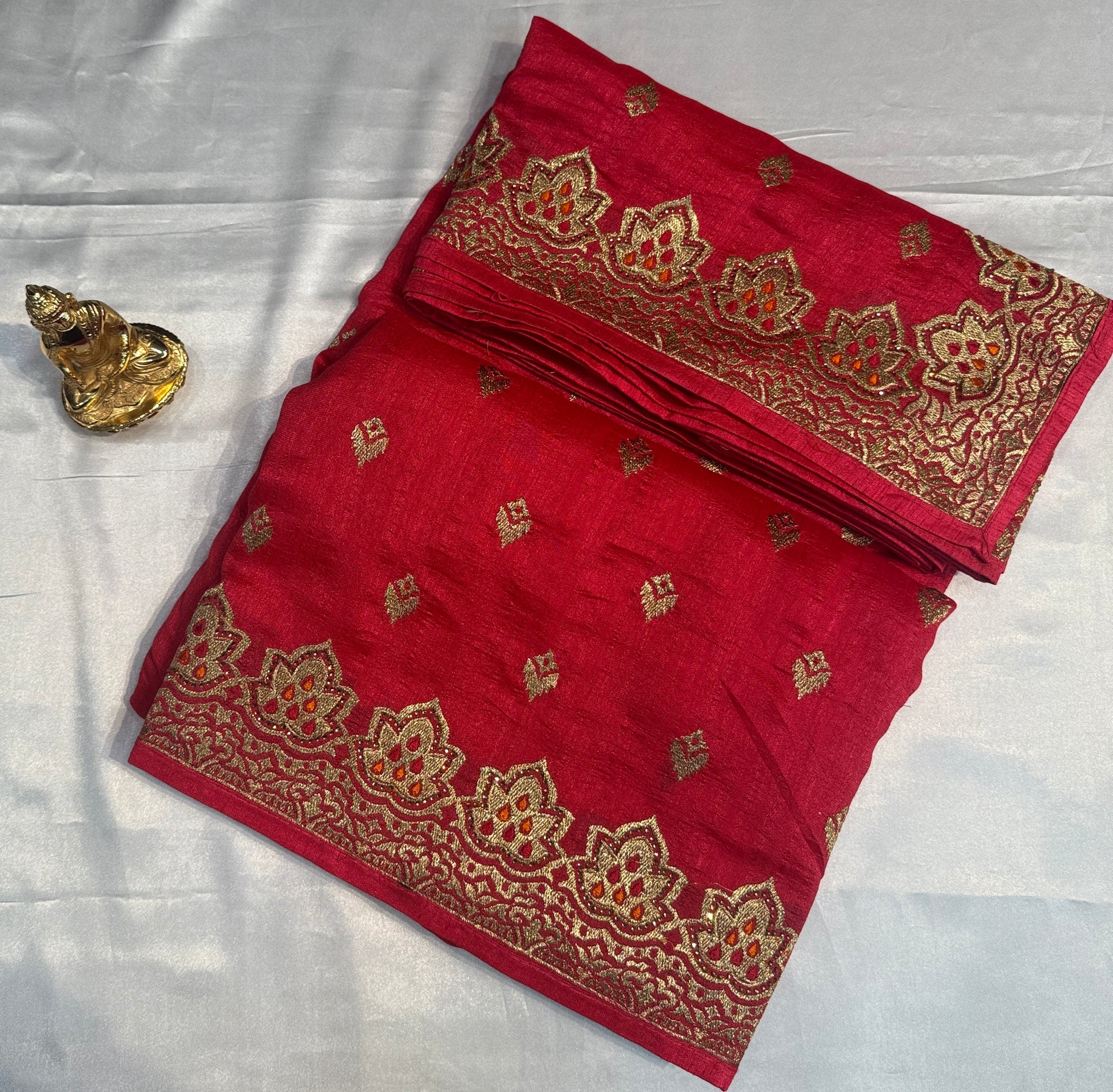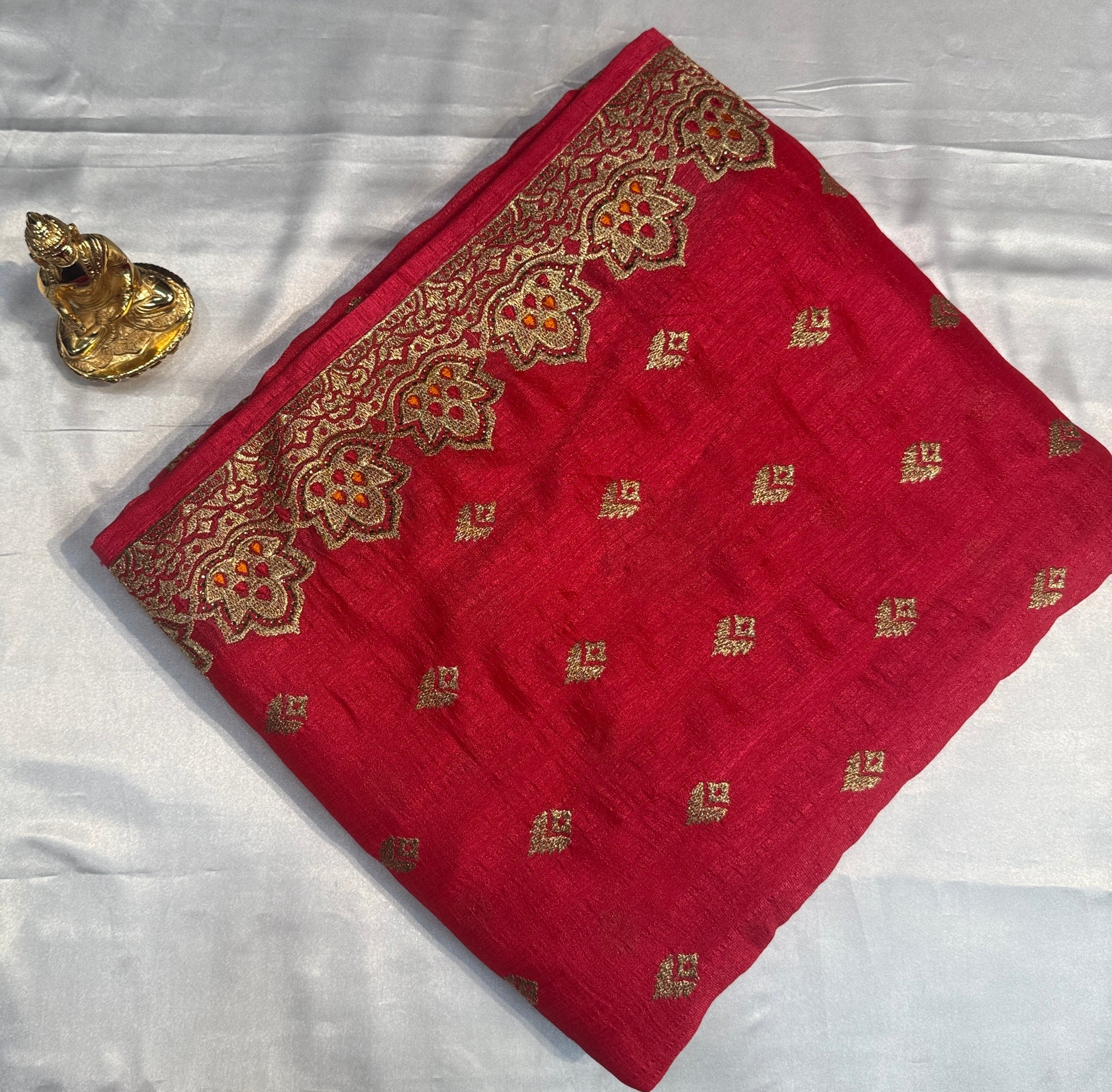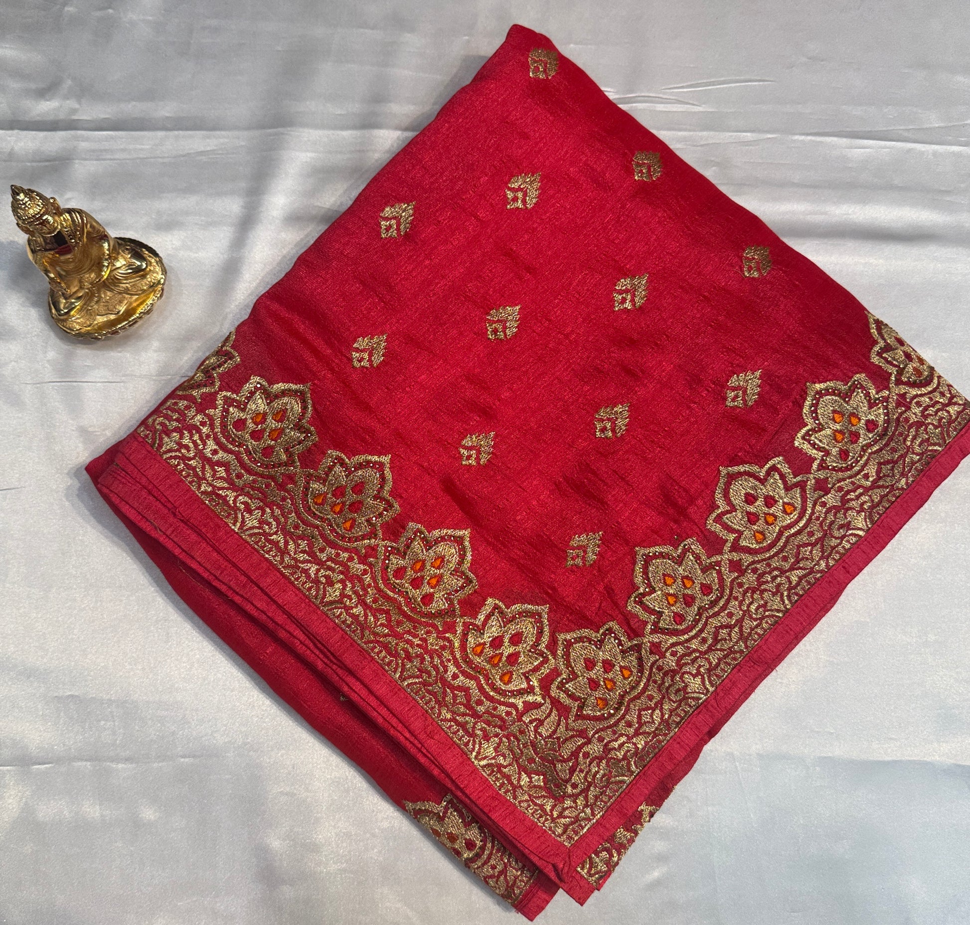 Alluring Pink Color Heavy Chinon Embroidered Work Fancy Saree - PREMIUM QUALITY