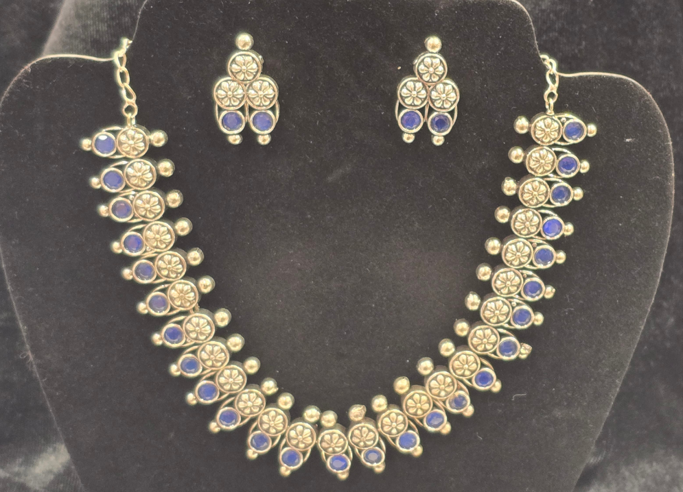 Amazing Blue Color Oxidized Necklace With Earrings Set