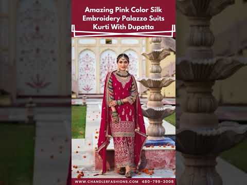 Amazing Pink Color Silk Embroidery Palazzo Suits Kurti With Dupatta