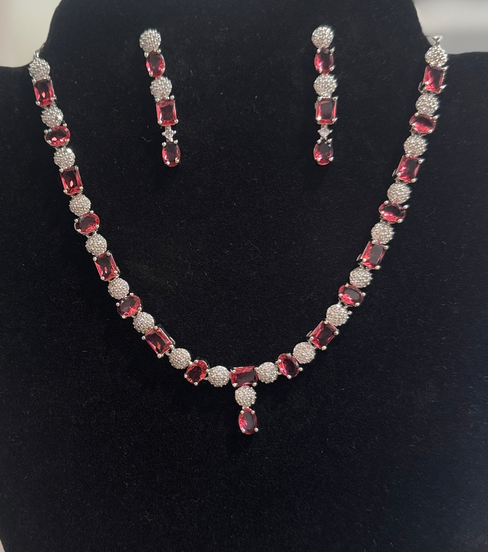 Attractive American Diamond Pink Color Stones Necklace And Earrings Set