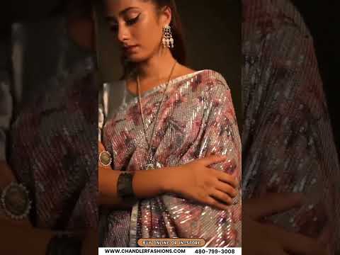 Attractive Gray Colored Sequins Work Embroidery Saree With Beautiful Latkan In Pallu