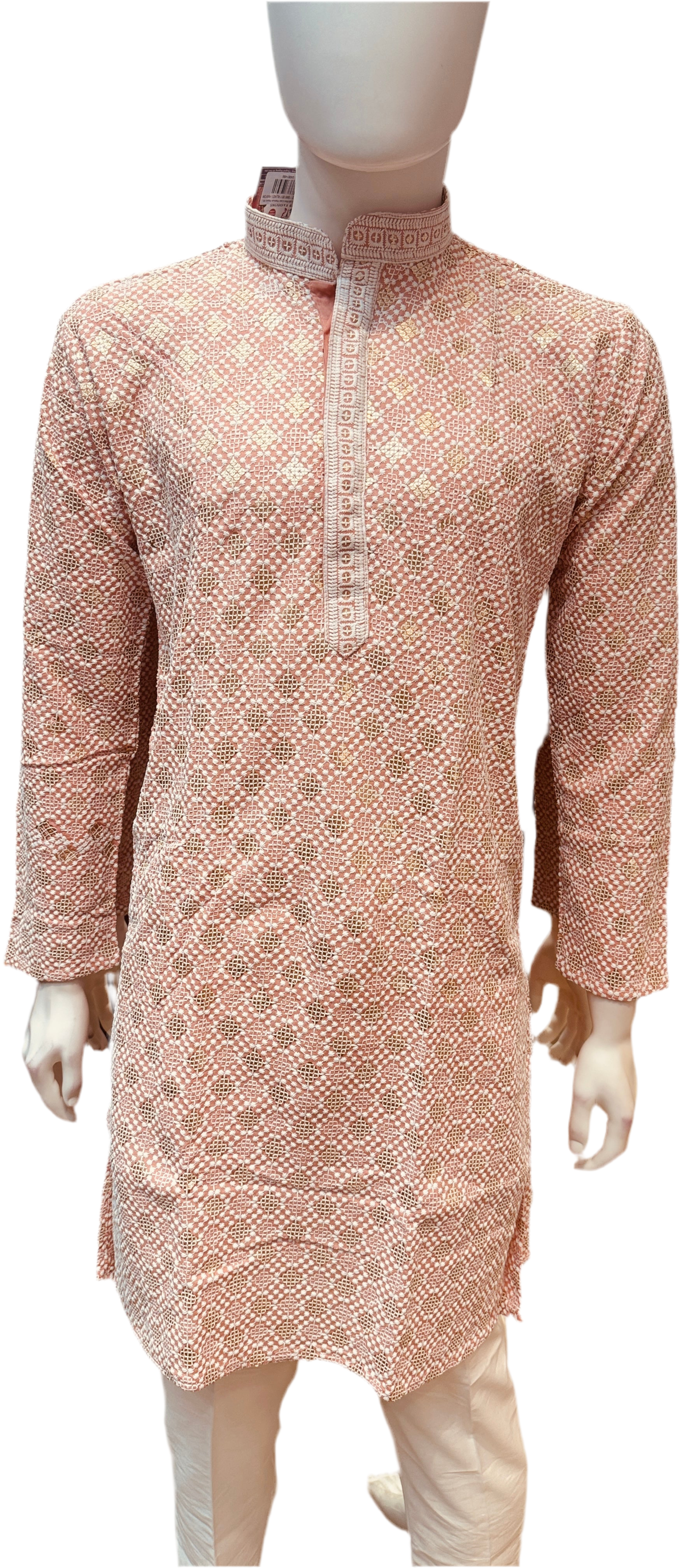 Attractive Light Pink Color Premium Rayon With Embroidery and Sequins Work Kurta Suit For Men