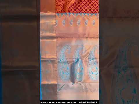 Beautiful And Attractive Design "MULBERRY KANCHI SILK" It is made from pure Mulberry Silk, which gives it a smooth texture and lustrous sheen. The saree is a deep Maroon, with a contrasting blue border and pallu. The body of the saree features a delicate gold zari pattern, while the pallu showcases intricate paisley motifs and floral designs.This saree hails from Kanchipuram in Tamil Nadu, India, a region renowned for its silk weaving tradition.It is suitable for special occasions and weddings, reflecting the grandeur and elegance of South Indian culture.