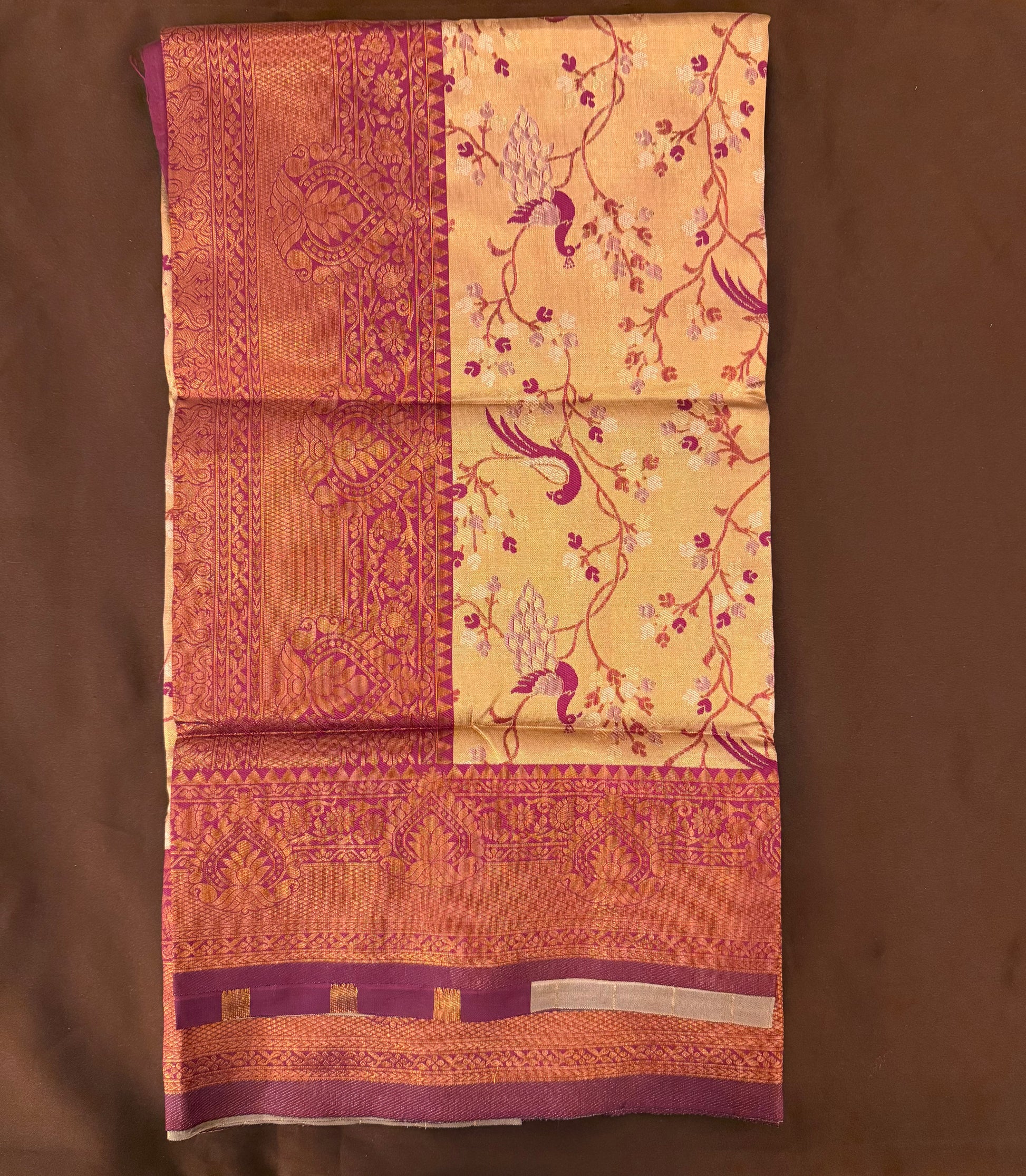 4.Don’t store the saree in a plastic cover as this will cause the gold embroidery to turn black.