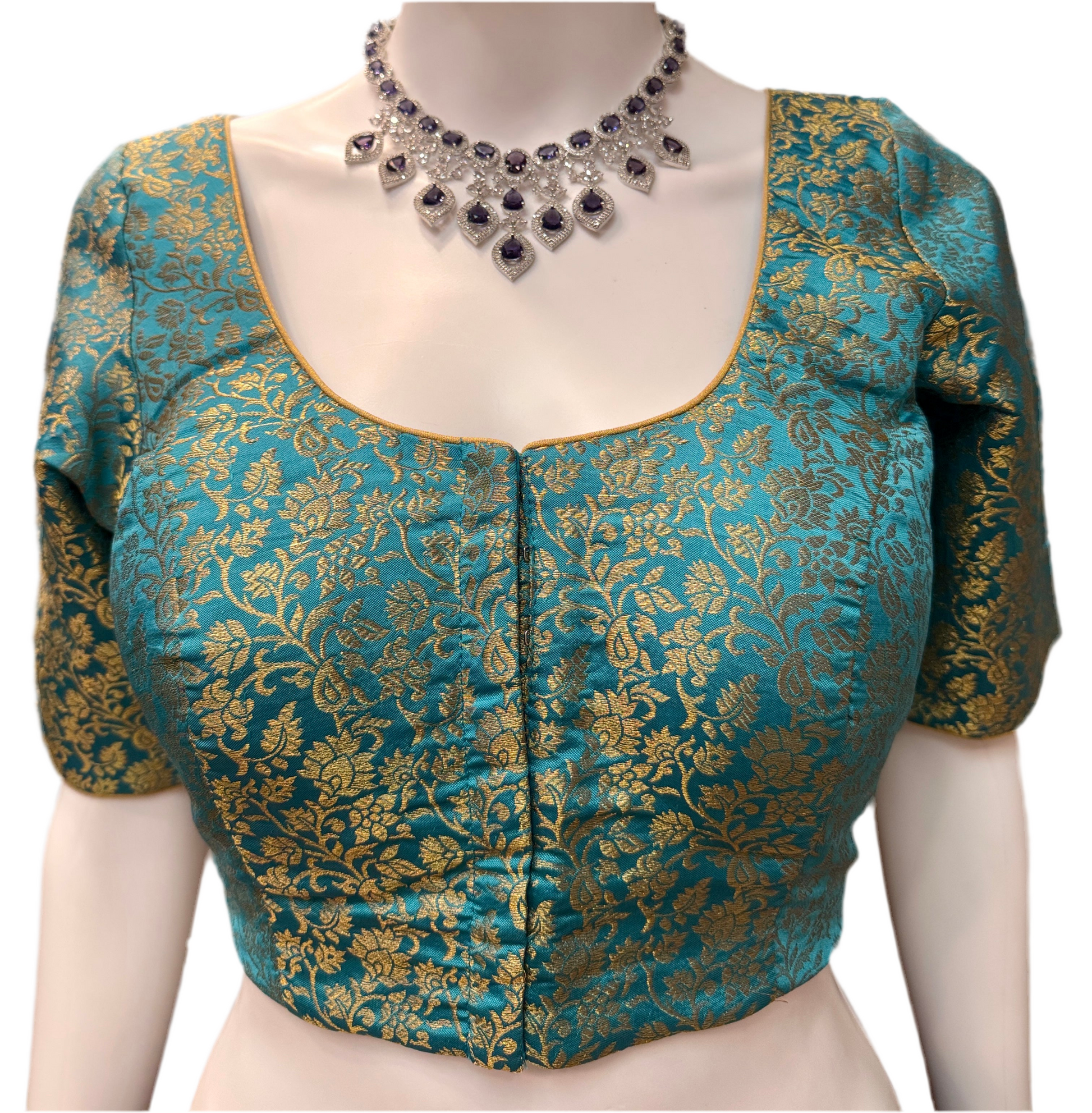 Attractive Sky Blue Colored Jacquard Printed Blouse For Women