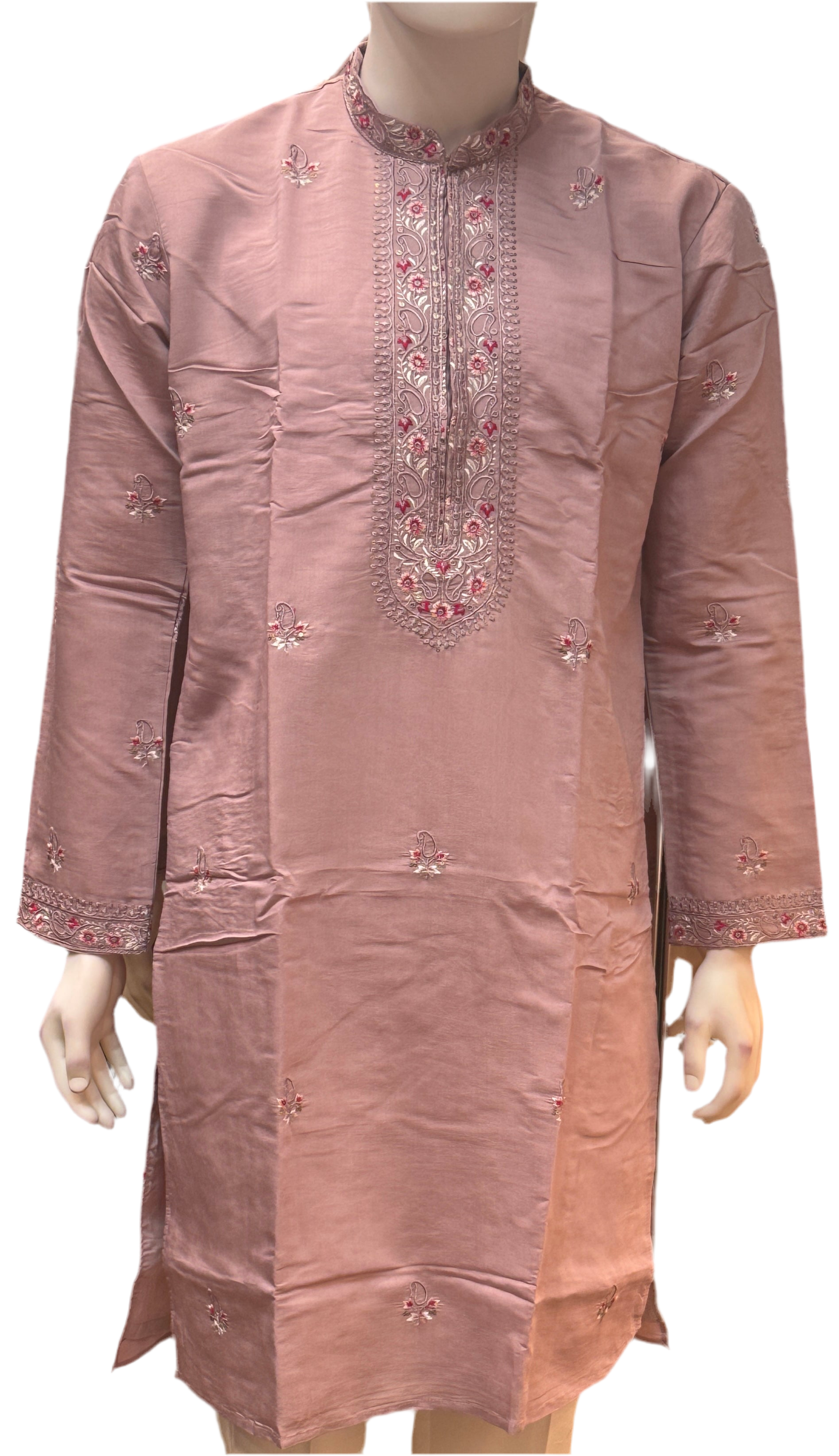 Attractive Light Pink Color Cotton Embroidery Work Kurta Suits For Men