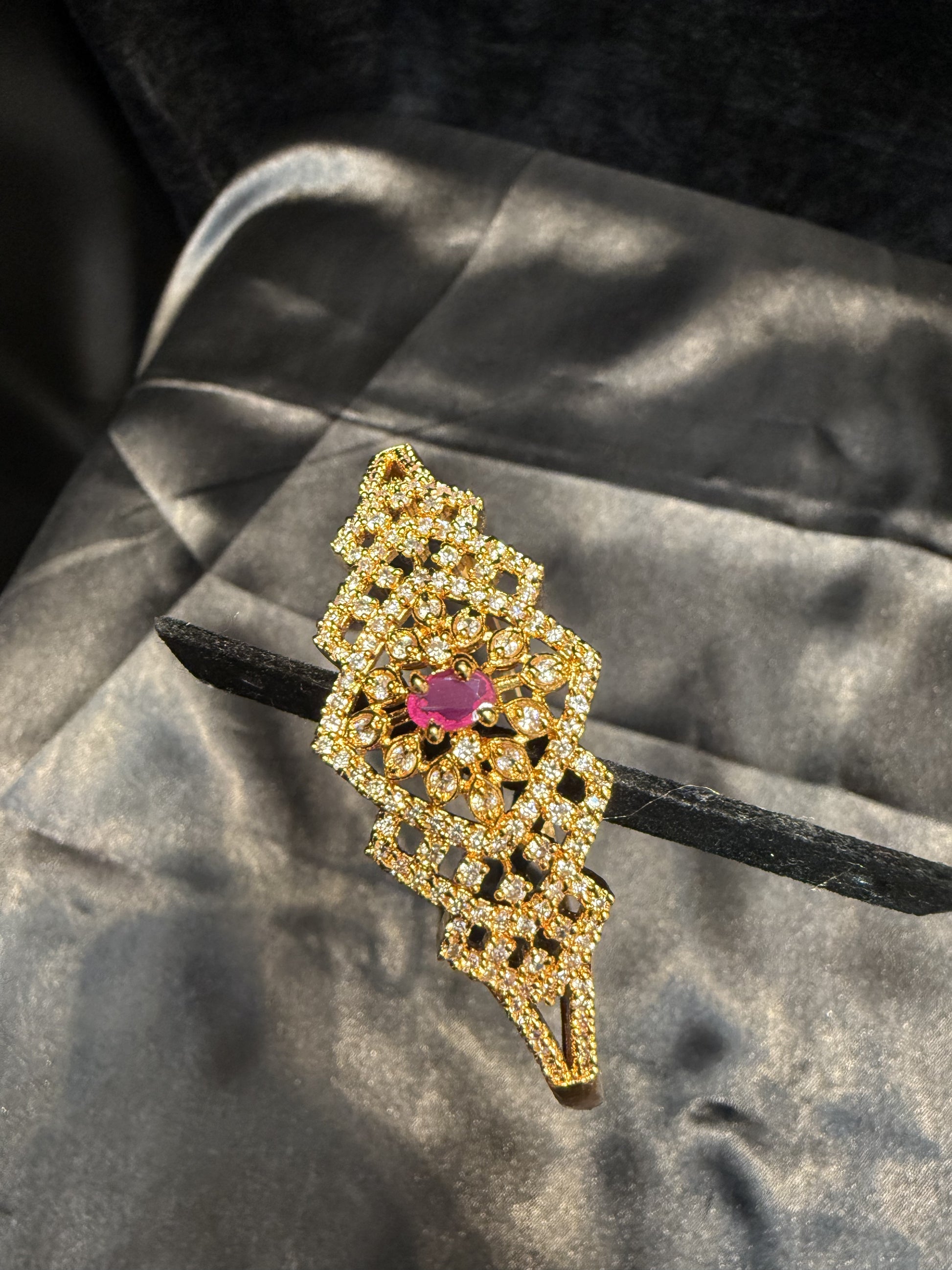 Alluring Gold Plated With Pink And White Stone Bracelet With A Beautiful Design