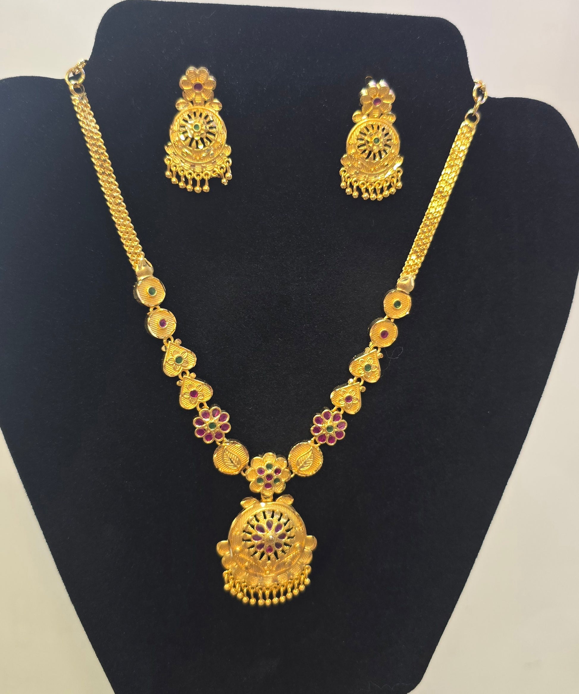 Beautiful Gold Plated Multicolor Necklace With Earrings Set