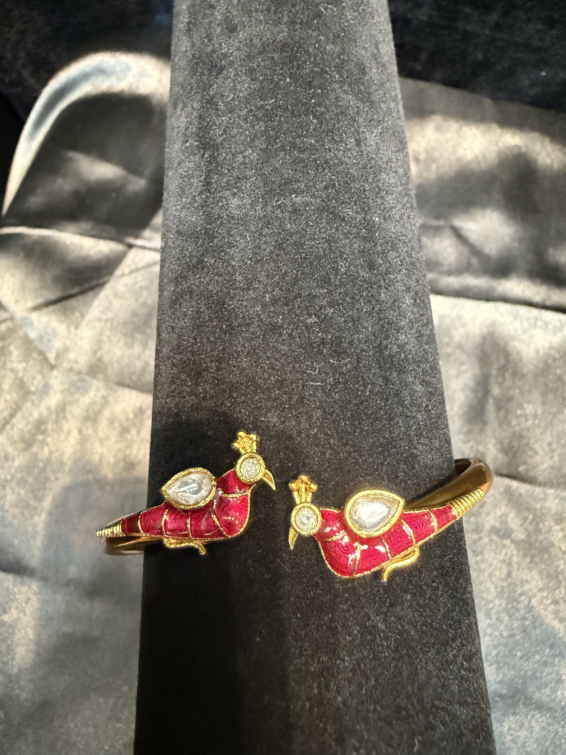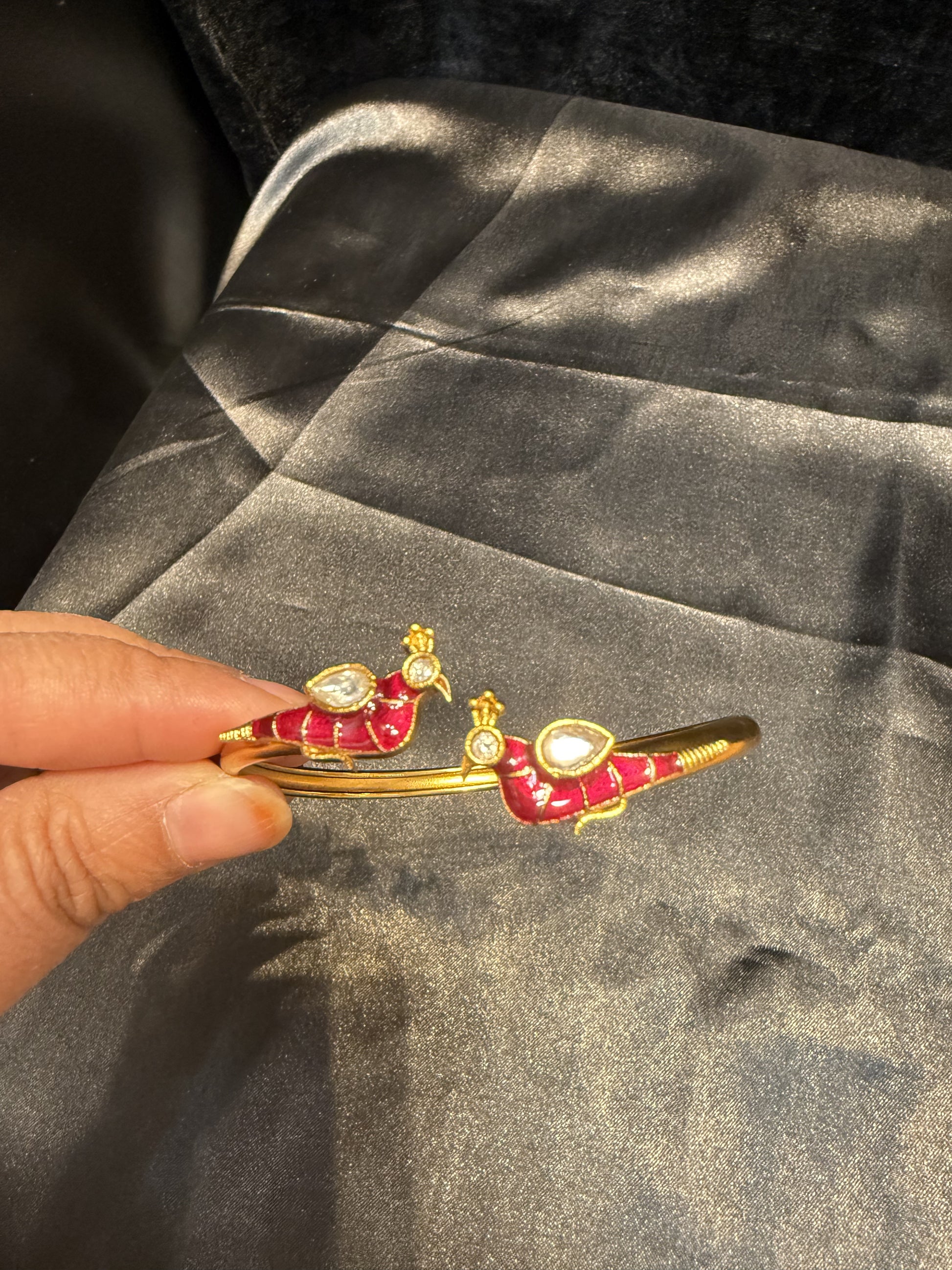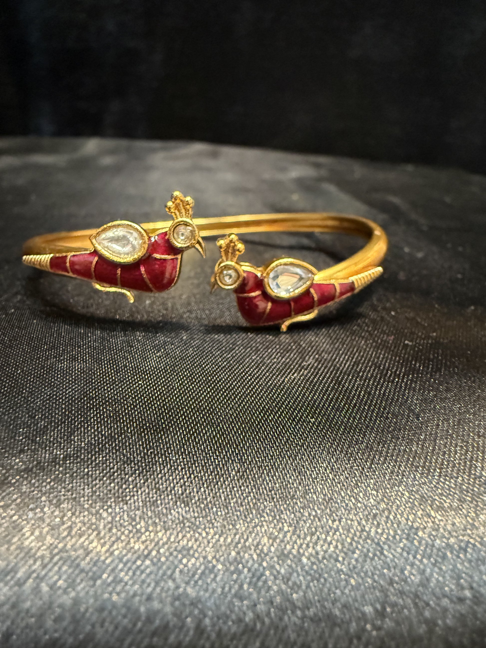 Beautiful Gold Plated With Hot Pink And White Stone Bracelet With Beautiful Peacock Design