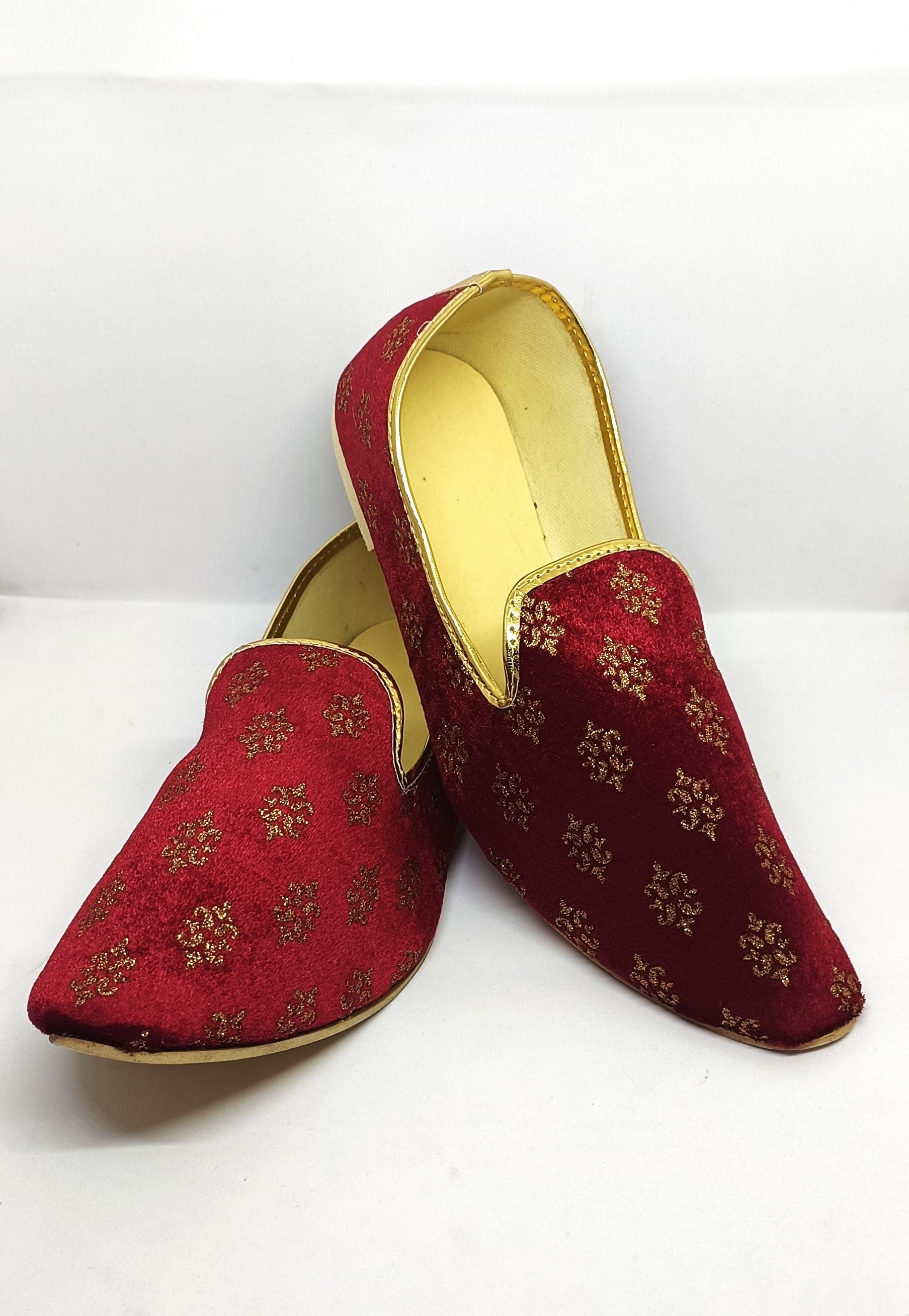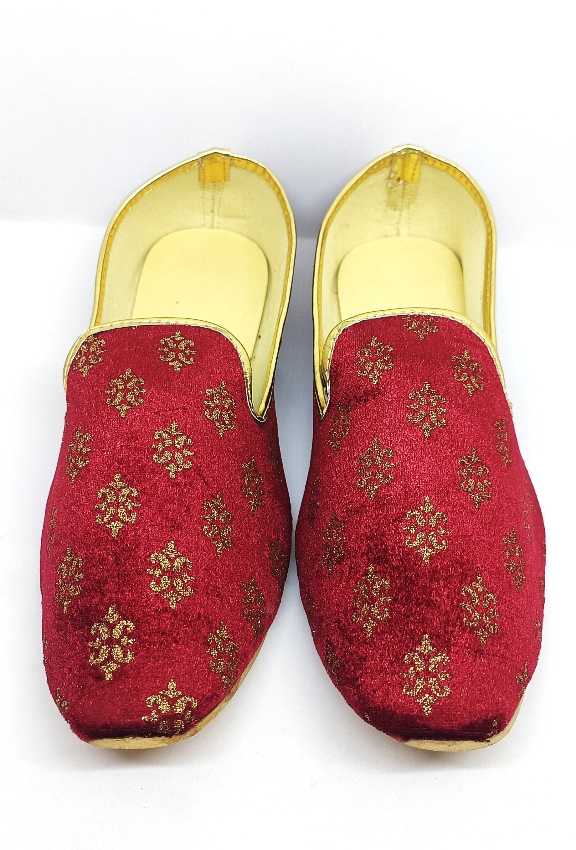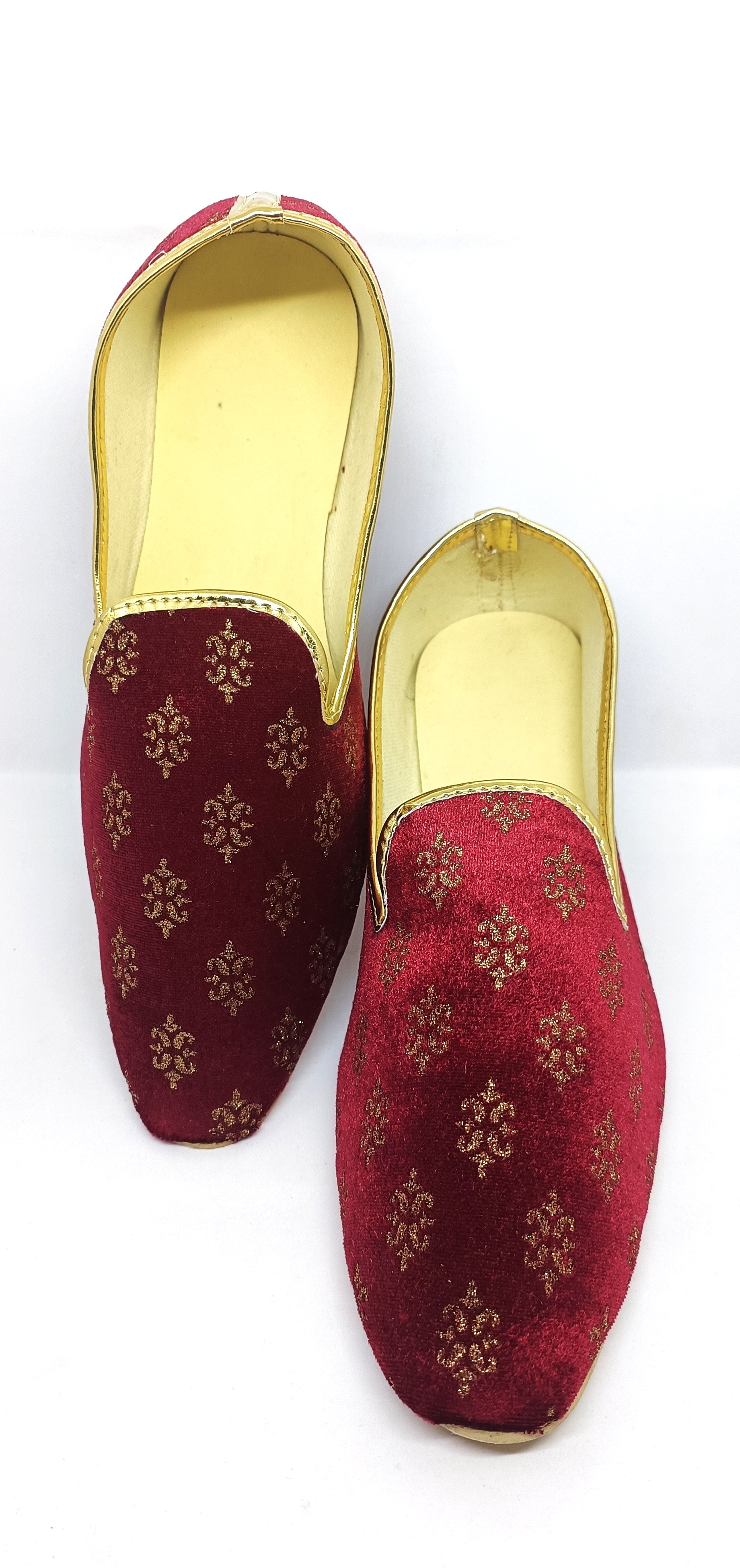 Beautiful Maroon Color Gold Thread Embroidery Work Mojaris For Men