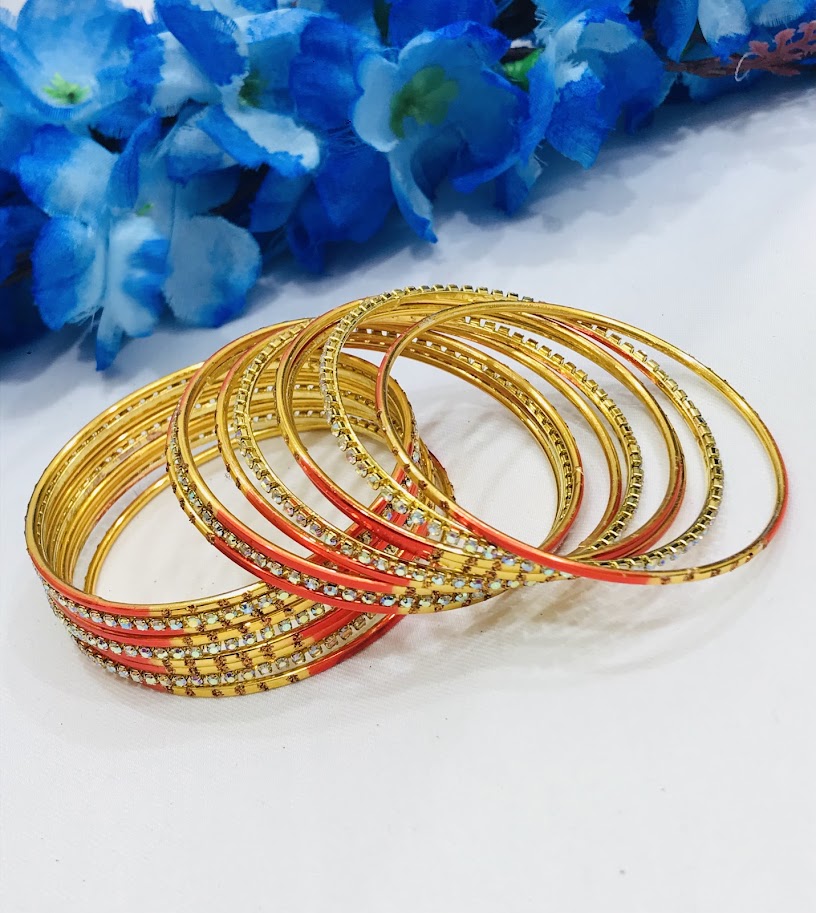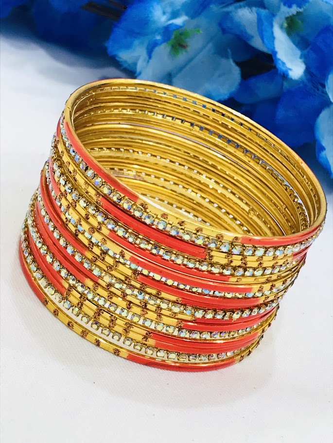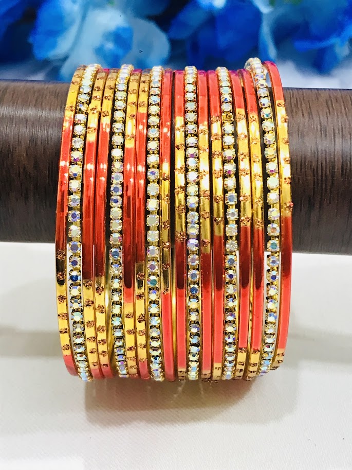Beautiful Orange Color Party Wear Metal Bangles For Women