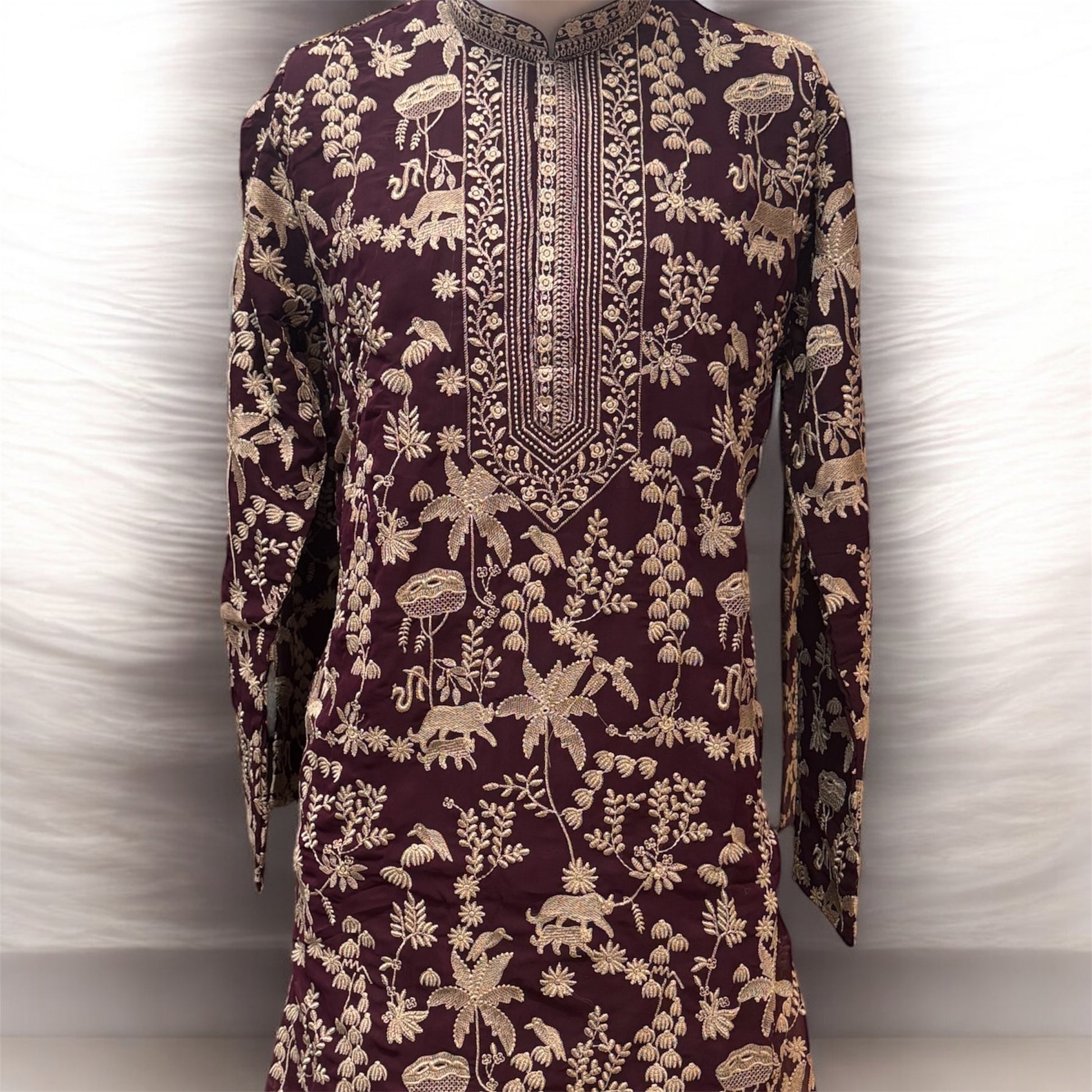 Beautiful Dark Purple Color Georgette With Embroidery Work Kurta Suits For Men