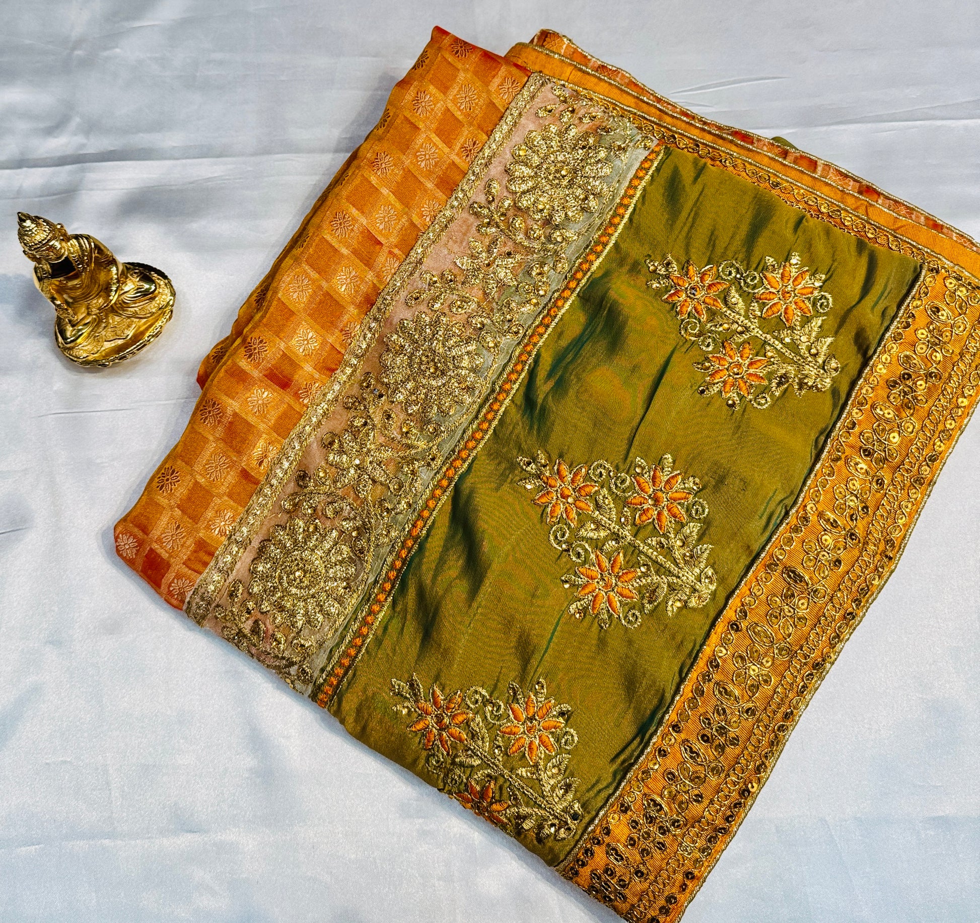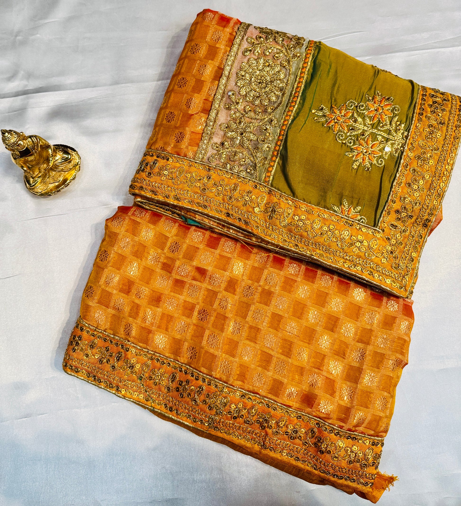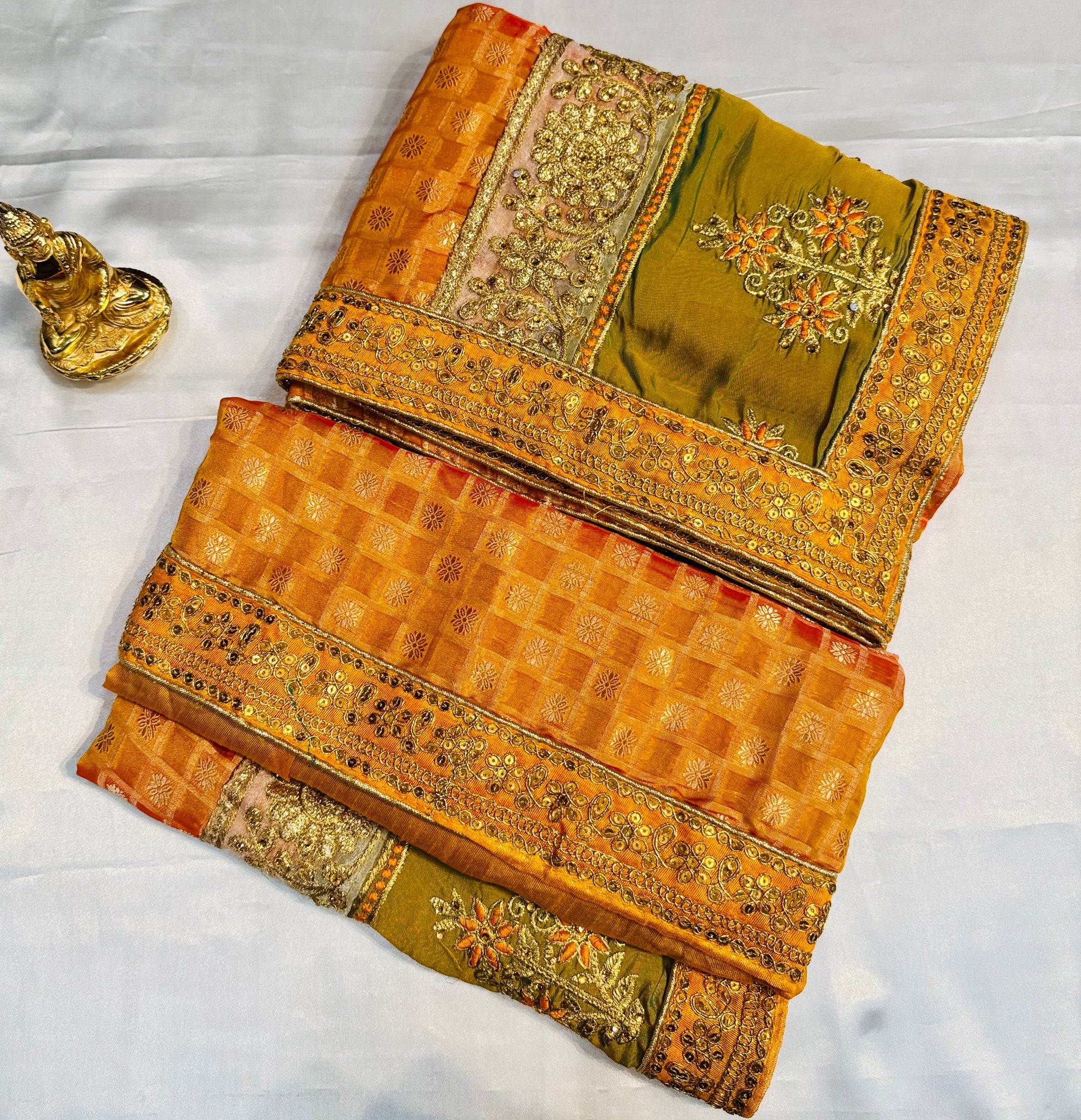 Charming Golden Yellow Color Georgette And Chiffon With Embroidered Work Fancy Saree - PREMIUM QUALITY