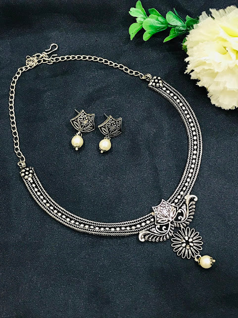 Charming White Beads Oxidized Necklace With Earrings Sets