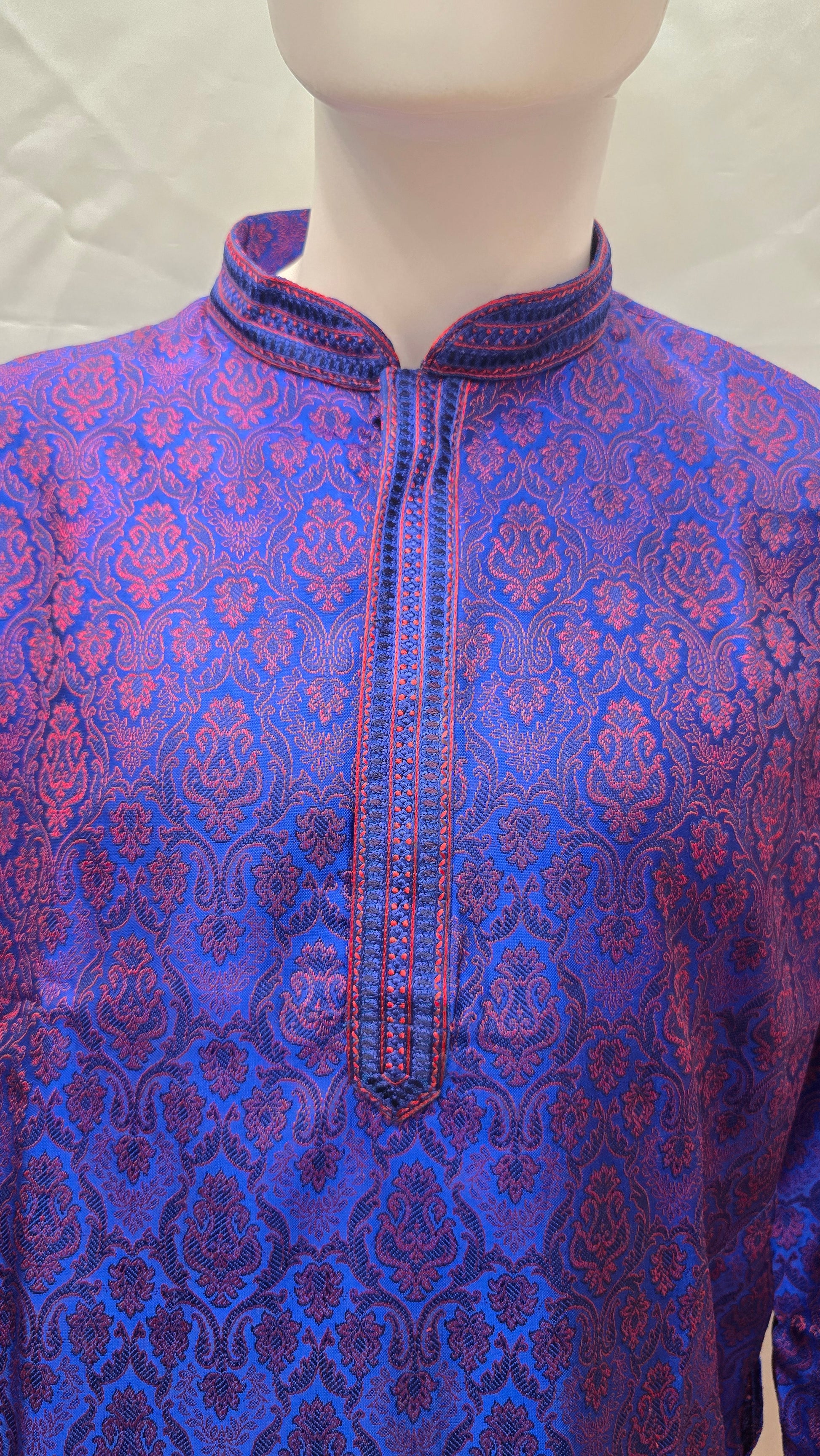 Elegant Blue Color Embroidery Work Kurta With Slub Silk Pajama Pant