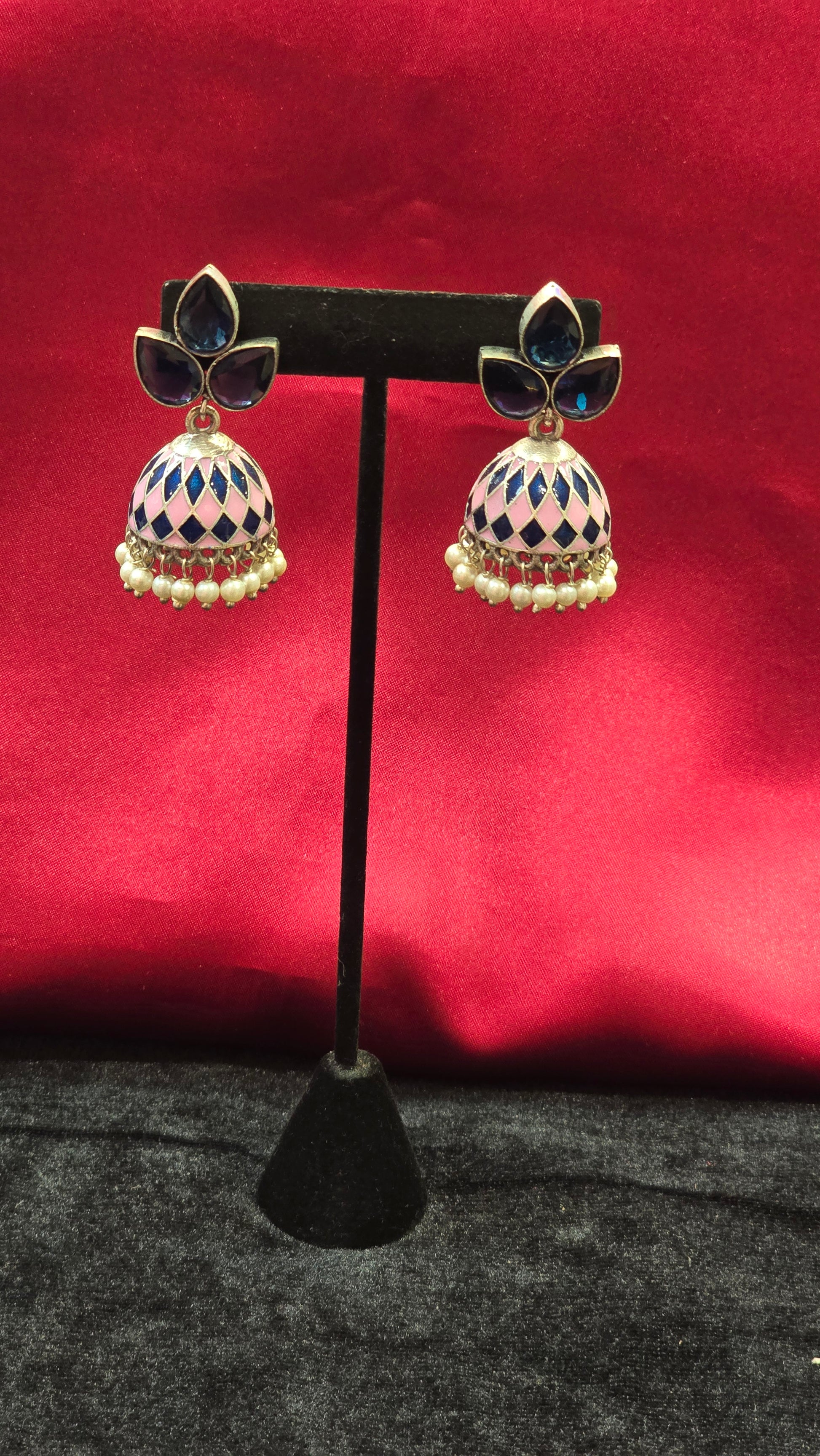 Dazzling Pink And Blue Jhumkas