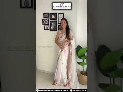 Elegant White Colored Faux Georgette With Designer Embroidery work Saree For Women