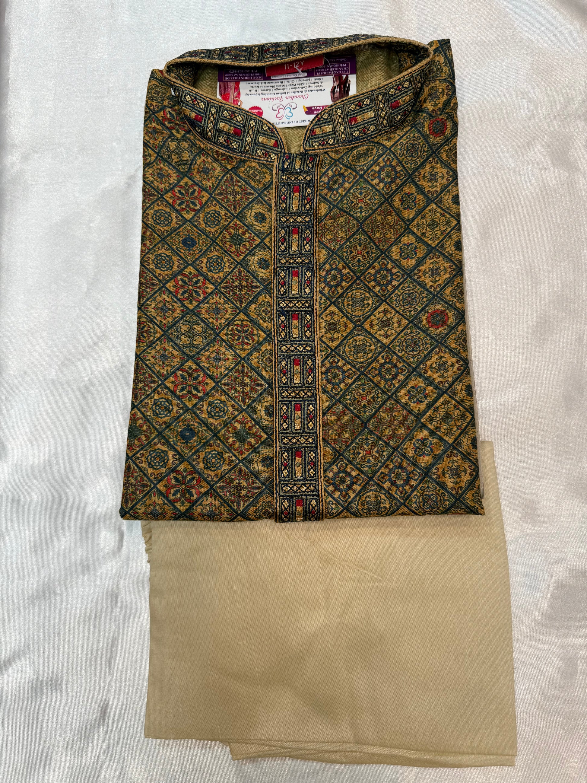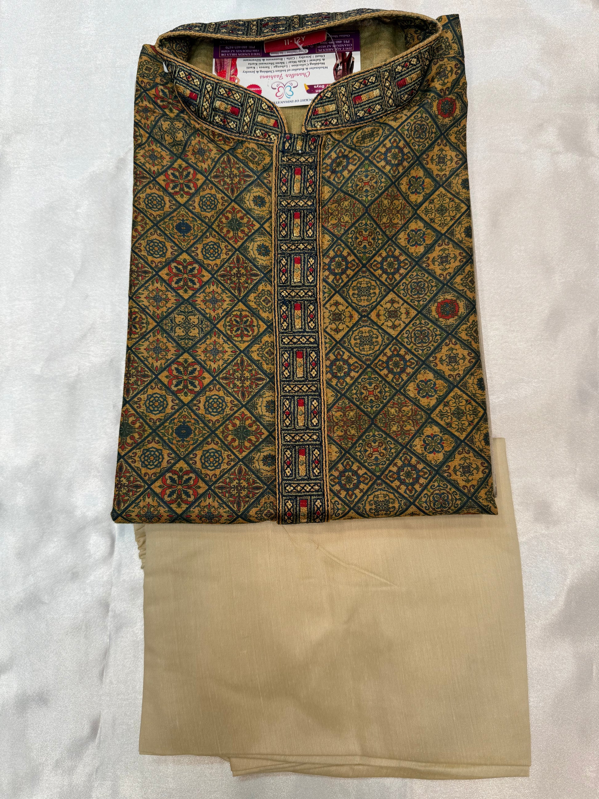 Fabulous Green Color Kurta Pajama Set With Digital Print Work For Boys