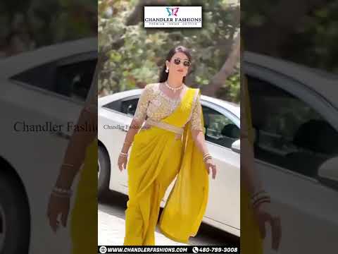 Gorgeous Lime Green Color Chinon Ready To Wear Saree For Women