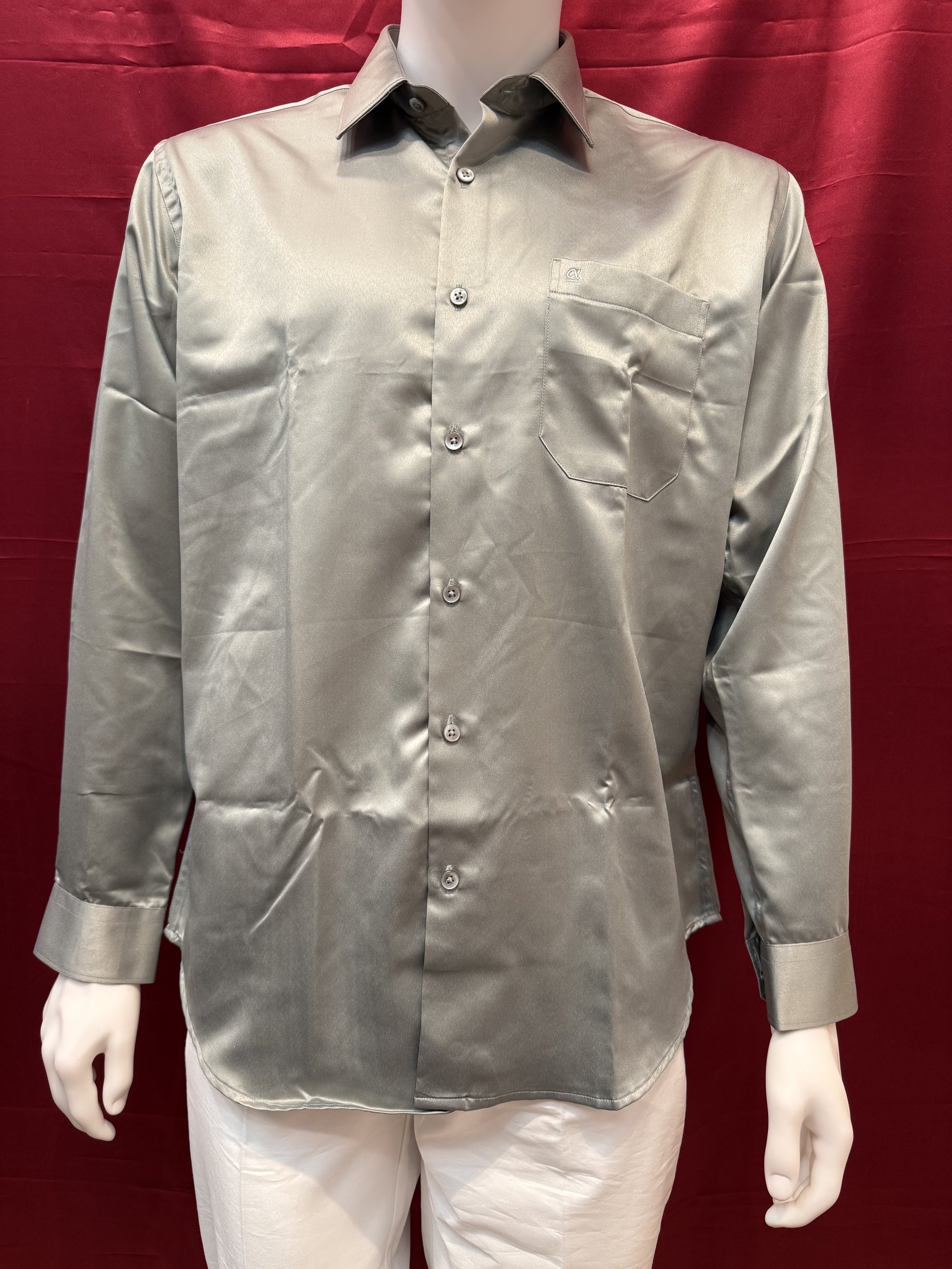 Beautiful Gray Color Full Sleeve Silk Shirt For Men