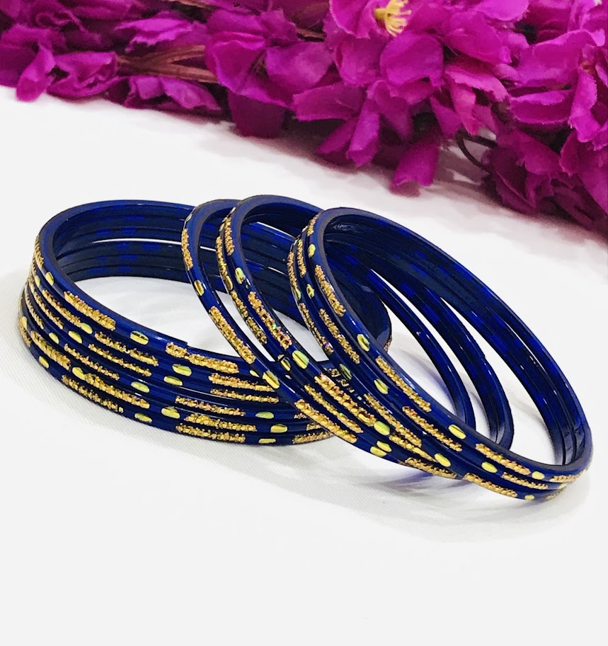 Beautiful Blue Color Glass Bangles With New Designs For Women