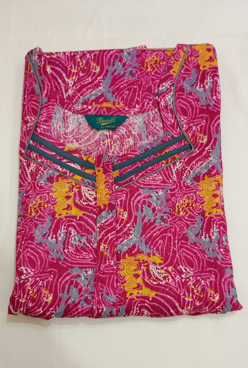 Gorgeous Pink Color Full Design Cotton Nighty For Women